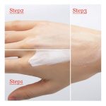 СТЪПКА 2: Изсипете подходящо количество течен фон дьо тен на гърба на ръката си. С помощта на четка, гъбичка или върховете на пръстите си внимателно нанесете фон дьо тена от центъра на лицето навън за равномерен и естествен завършек.