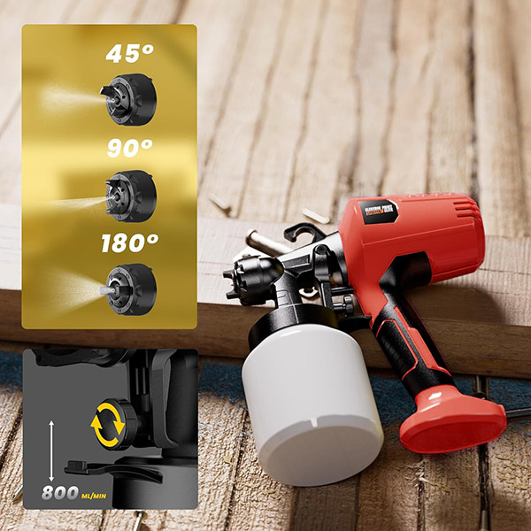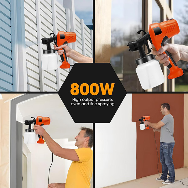 Напълнете 800-милилитровия резервоар, завъртете го и започнете да боядисвате – подготовката отнема под 60 секунди. Без грундиране, без разреждане на боята, без купуване на допълнително оборудване. 2,5 мм дюза осигурява постоянен, регулируем поток, така че да запазите контрол от първото до последното движение.