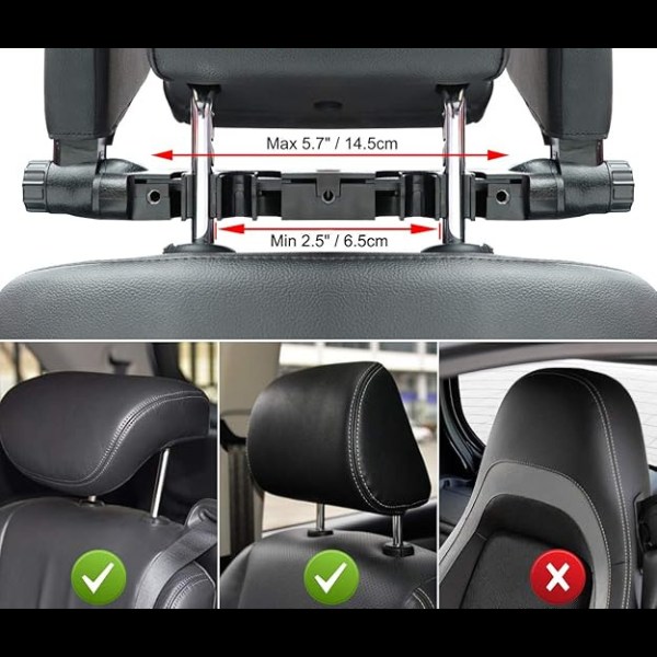 Съвместимост: Подходяща за седалки за кола с отделни облегалки за глава и разстояние между облегалките от 7 до 16 см. Не е подходящ за фиксирани облегалки за глава.