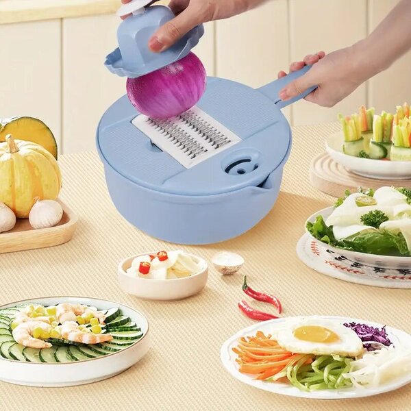 От разделяне на яйца до нарязване на зеленчуци, дизайнът 12-в-1 се справя с почти всяко предизвикателство при подготовката на храна. Предлага се в стилни сини и розови цветове, които да съответстват на декора на вашата кухня.