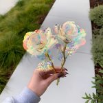 Всяка роза е изработена с преливащо, холографско покритие, което красиво блести на светлината, създавайки блясък, подобен на галактика, който е просто хипнотизиращ.