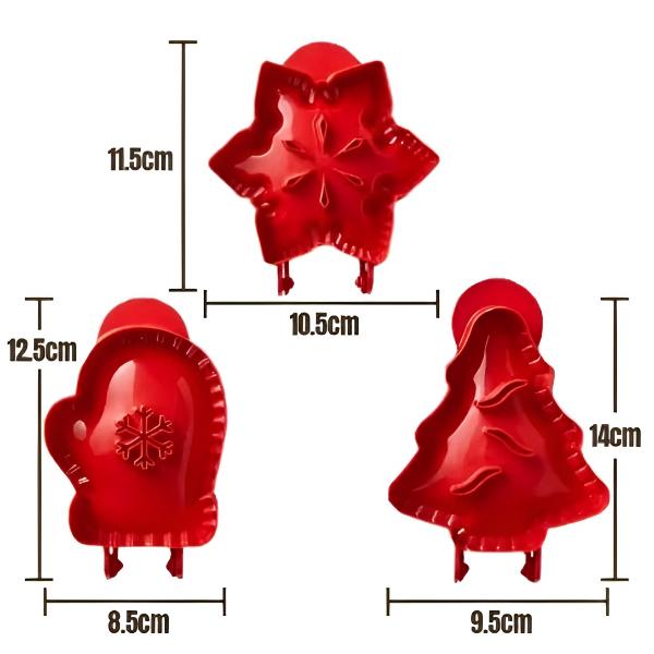Добавете уникален, празничен щрих към вашите пайове с три вълнуващи форми – снежинка, ръкавица и коледна елха.