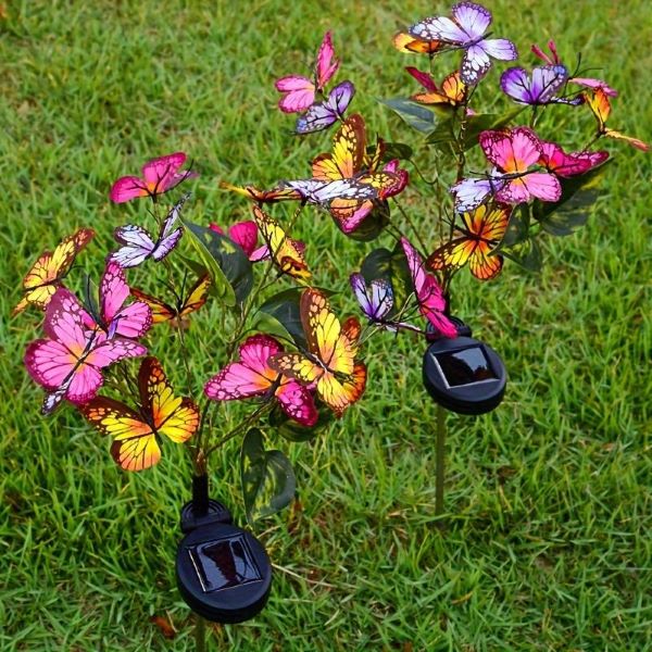 С реалистични пеперуди от плат и многоцветни LED феерични светлини, тези градински лампи със слънчево захранване със сигурност ще ви заслепят и възхитят. Добавете причудливо докосване към градинския си декор с уникалния им дизайн. Светодиодните светлини са енергийно ефективни и излъчват топло, приканващо сияние.