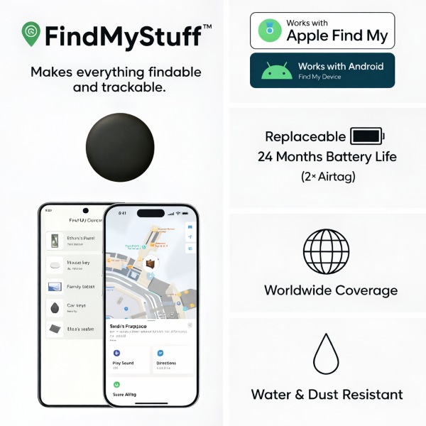 📱 Съвместимост с Apple и Android „Find My“