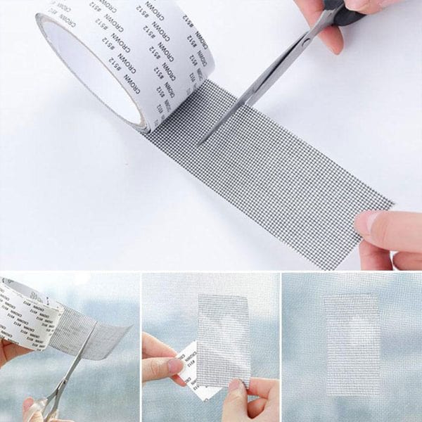 Перфектна за използване в различни условия, независимо дали на закрито или на открито, тя осигурява незабавно решение за прикриване на дупки. Лентата е специално проектиран да издържа на среда с висока влажност, което я прави подходяща за поправяне на дупки и разкъсвания в прозоречни мрежи, мрежи за пердета, басейни, екрани за кемпери и много други повърхности.