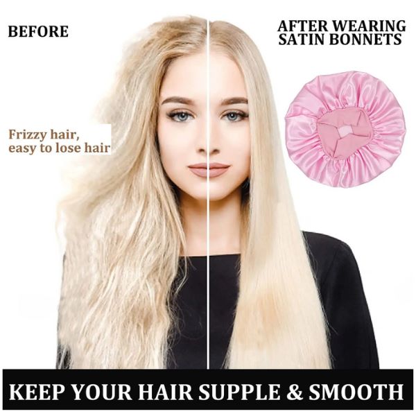 Защитете естествената си прическа с тези основни сатенени шапки за коса за сън. Подходящи са за къдрава, естествена, вълнообразна, права, чуплива, дълга коса, плитки и др.