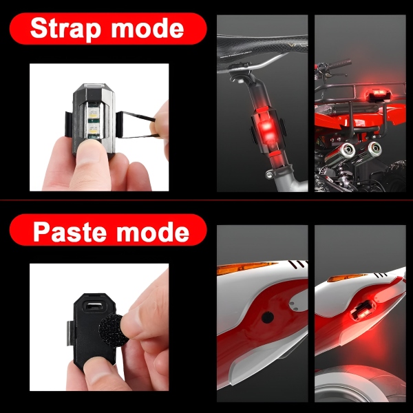 Тези светлини са невероятно универсални и са проектирани да пасват на автомобили, мотоциклети, велосипеди и дронове. Изберете между методите за монтаж с велкро и гумен пръстен за сигурна и лесна настройка. Няма нужда от сложни инструменти или професионална помощ.