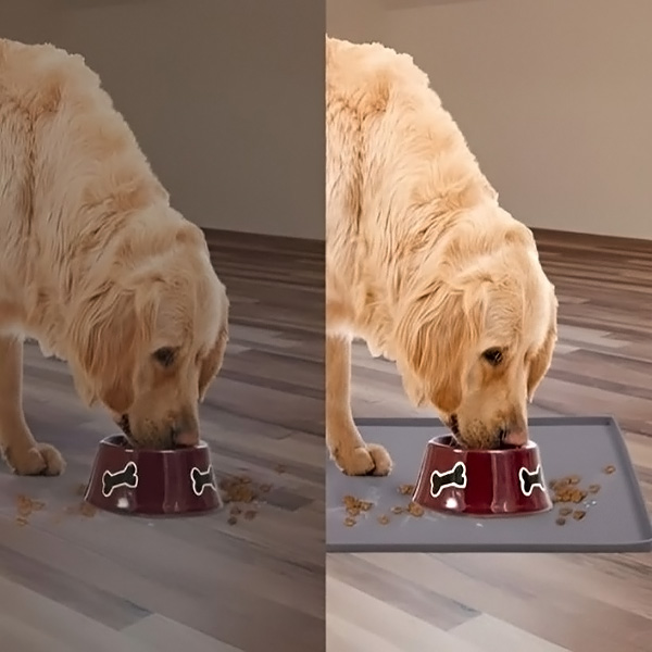 Омръзнало ви е навсякъде да има трохи от храна и разлята вода? Тази подложка за хранене улавя всяка бъркотия, като поддържа пода ви безупречен. Кажете сбогом на стреса от почистването и се насладете на повече качествено време с вашия космат приятел!