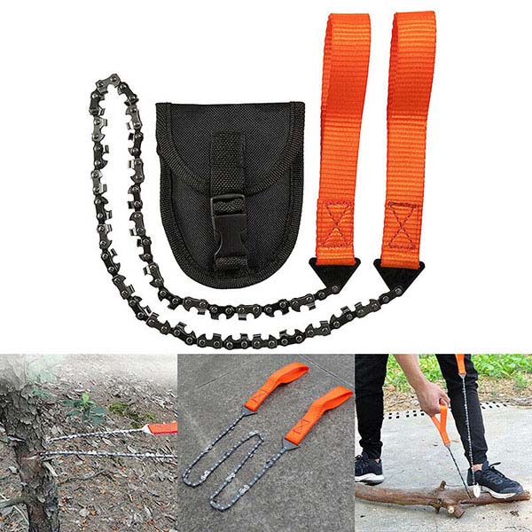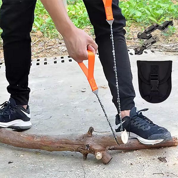 Компактен и лек, този верижен трион се побира лесно в раницата ви. От съществено значение за къмпингуващите и туристите за бързо събиране на дърва за огрев и подготовка на местата за лагеруване.